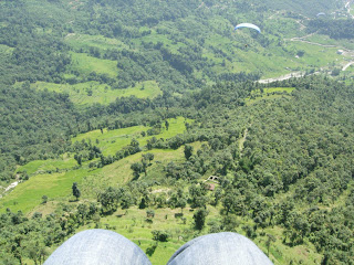 So it was super cool and kinda like being a bird. You can see the whole valley, and the lake, and it was incredibly pretty. However, to stay aloft, we had to circle over a thermal air pocket. And after half an hour of thermal circling, I was really regretting not taking that gravol. I asked if we could go straight for awhile, and the short answer was no. He asked me if I wanted to land and I was like "yes, please!" as I tried mightily not to vomit from hundreds of feet in the air over rice fields.